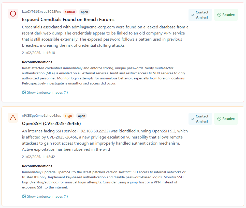 Our platform doesn’t overwhelm you with detections it distils verified findings, enriched by AI for speed, precision, and compliance. Every alert verified by experience.