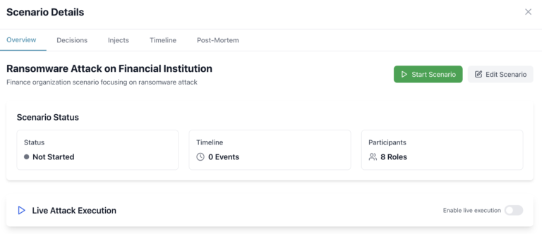 Create realistic incident scenarios and response playbooks in minutes. Guide your team through timed injects, capture decisions, and rerun improved exercises with a clear audit trail. No contracts. Cancel anytime.