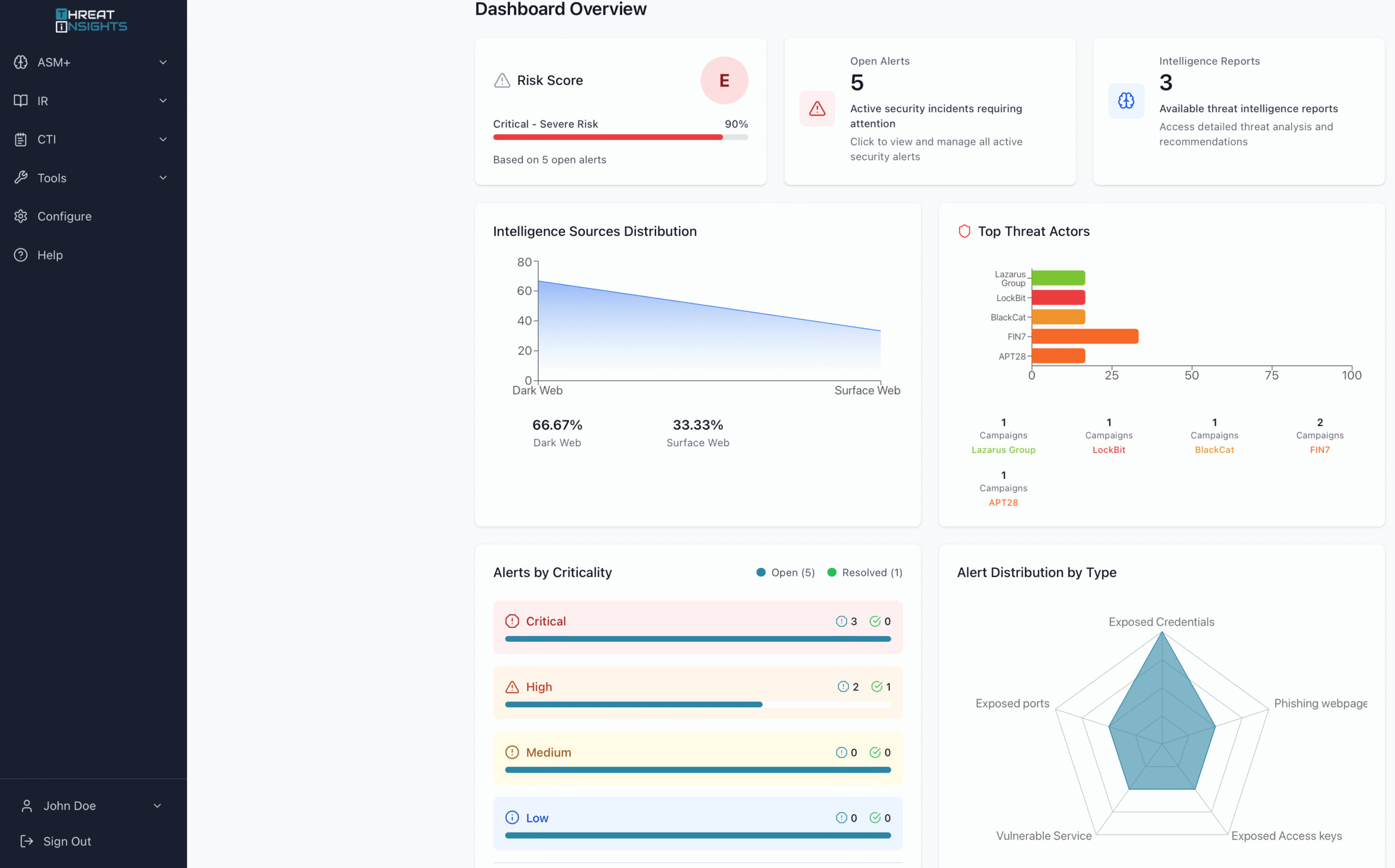 ThreatInsights platform provides continuous external attacks surface management, integrated cyber threat intelligence and incident readiness. Get insights into your business and see it the way hackers do.